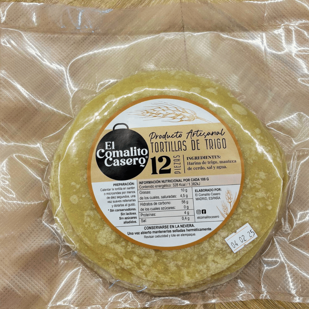 Deliciosas tortillas de harina de trigo con la auténtica receta mexicana. Sin conservadores ni químicos con solo 4 ingredientes y nada más. Se deben conservar en la nevera , es un producto fresco que una vez abierto debe de consumirse en los siguientes 5 días. Mantener las tortillas cerradas herméticamente todo el tiempo para evitar que el frío de la nevera las ponga duras.